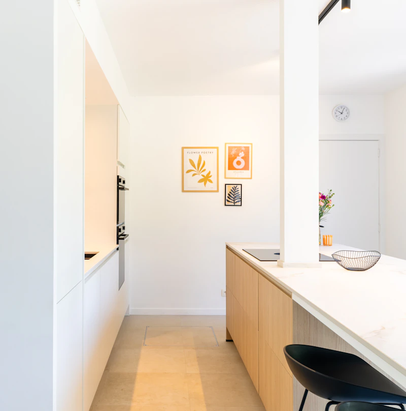 - Witte keuken met houtstructuur toetsen